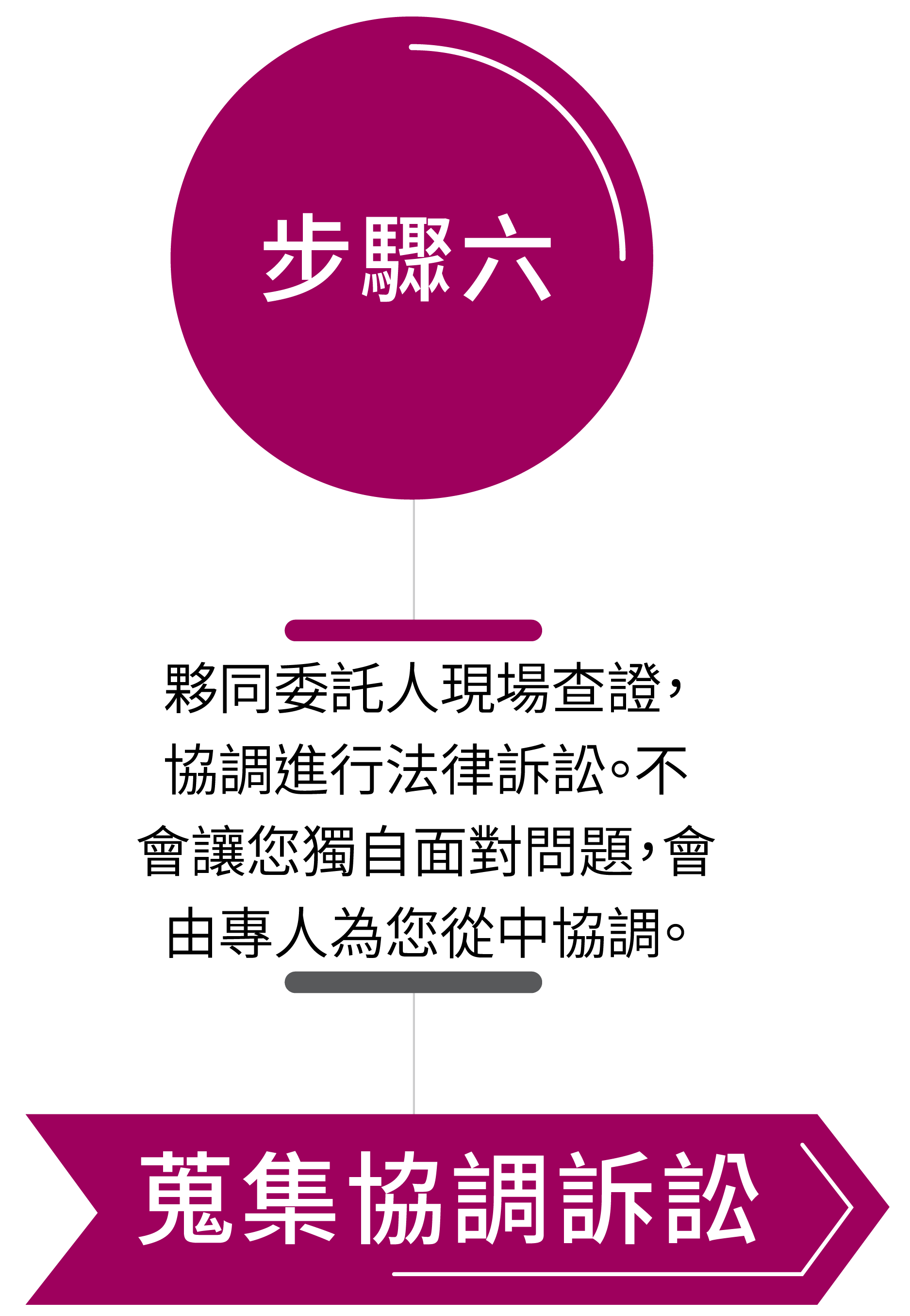 來電洽詢→確認委託內容→書面意向回覆→簽約&支付訂金→提供客戶資料→蒐集協調訴訟→結案。 簡潔快速的委託程序給客戶帶來方便,也是威茗徵信的承諾。為了讓客戶能夠及時、完整地瞭解我們的委託程序,請按以下指示瞭解委託步驟。